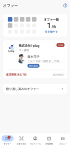 ▼参考:オファー受信後の学生画面(スマホ)